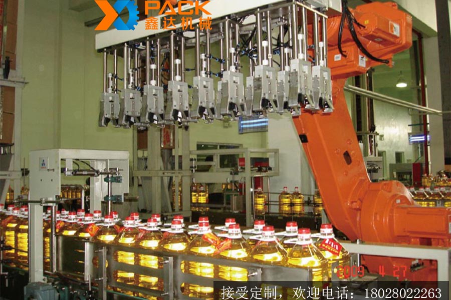 500ML、5L等瓶裝類(lèi)食用油機(jī)器人自動(dòng)裝箱