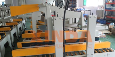 此款全自動(dòng)紙箱折蓋封箱機(jī)用于裝箱機(jī)后紙箱自動(dòng)折蓋、噴膠粘結(jié)或膠帶封箱,目前廣泛用于批量生產(chǎn)型行業(yè)包裝的全自動(dòng)流水線作業(yè),比如紡織、家用電器、工業(yè)用品、藥品、食用油、玩具、五金、日化等行業(yè)產(chǎn)品包裝、紙箱自動(dòng)封箱。